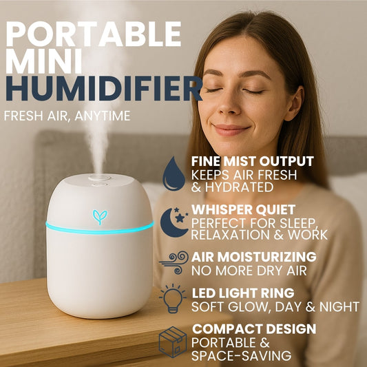 Cool Mist Humidifier - USB Portable Air Moisturizer with LED Display